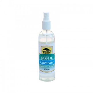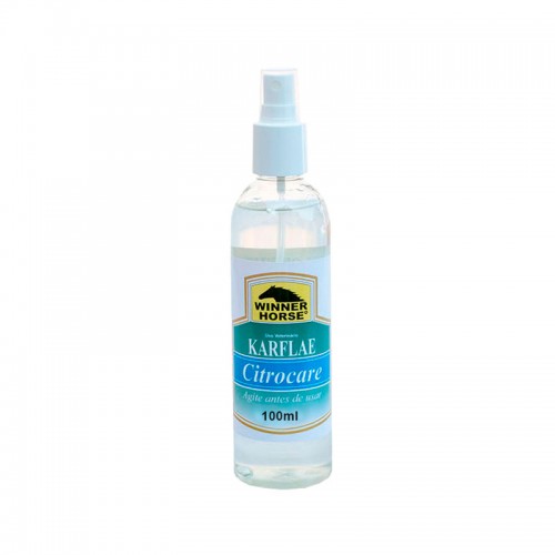 Karflae Citrocare com citronela que repele moscas nos mais diversos ambientes tais como áreas de trabalho e cocheiras onde o animal repousa. Indicado para provas de adestramento, conformação, exposições, leilões e ocasiões em que a atenção do animal não possa ser dispersa.
