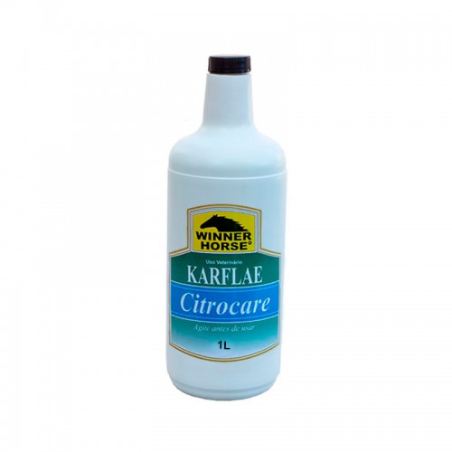 Karflae Citrocare com citronela que repele moscas nos mais diversos ambientes tais como áreas de trabalho e cocheiras onde o animal repousa. Indicado para provas de adestramento, conformação, exposições, leilões e ocasiões em que a atenção do animal não possa ser dispersa.