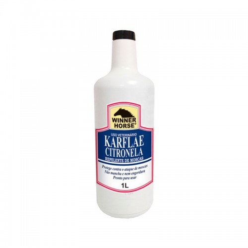 Karflae Citronela é um repelente de moscas feito como os mais modernos do mundo. À base de produtos naturais, não contém substâncias tóxicas. Seu ativo extraído do capim citronela repele as moscas e deixa o animal tranquilo, livrando-o das doenças comumente transmitidas por moscas e pernilongos. Não agride a natureza, não mancha e não engordura.
