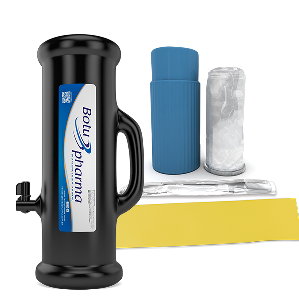 Tubo rígido de alta resistência com pintura em poliuretano, com torneira de entrada de água que possibilita também a insuflação de ar, diminuindo o peso final da vagina. O tubo rígido possui um design anatômico para maior conforto do garanhão durante a conheita do sêmen.